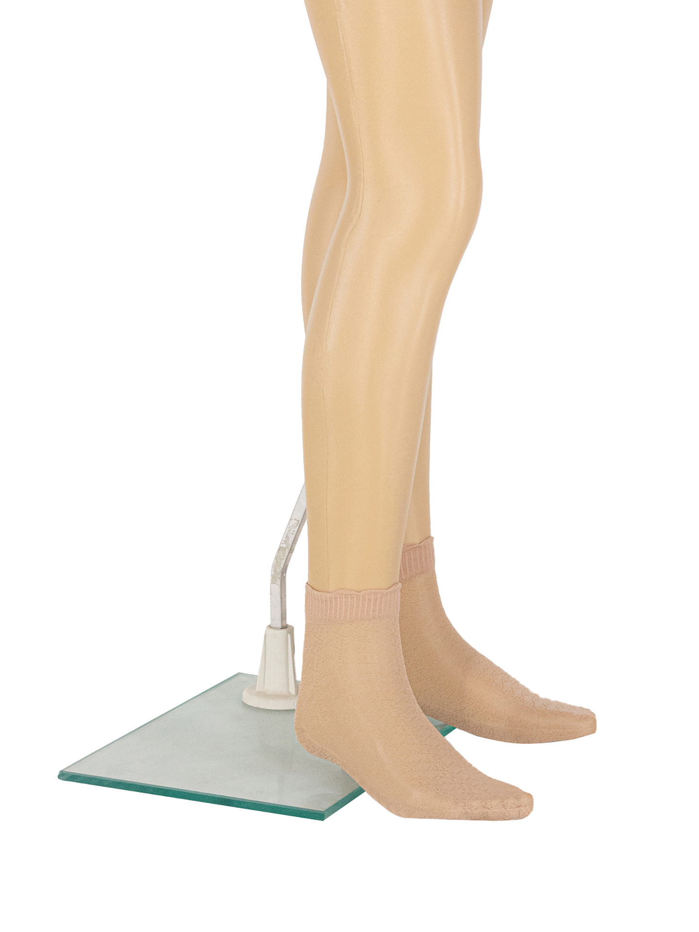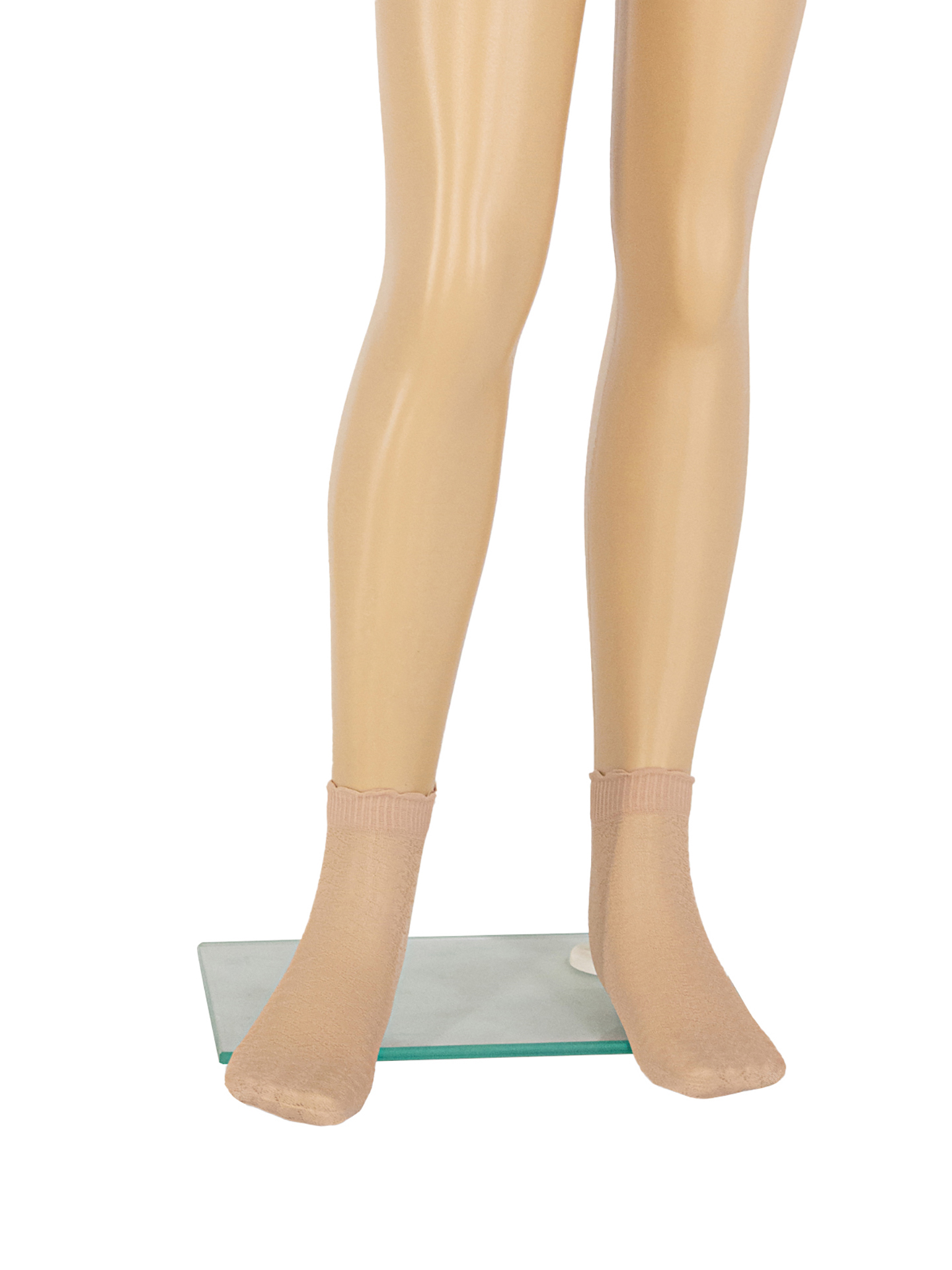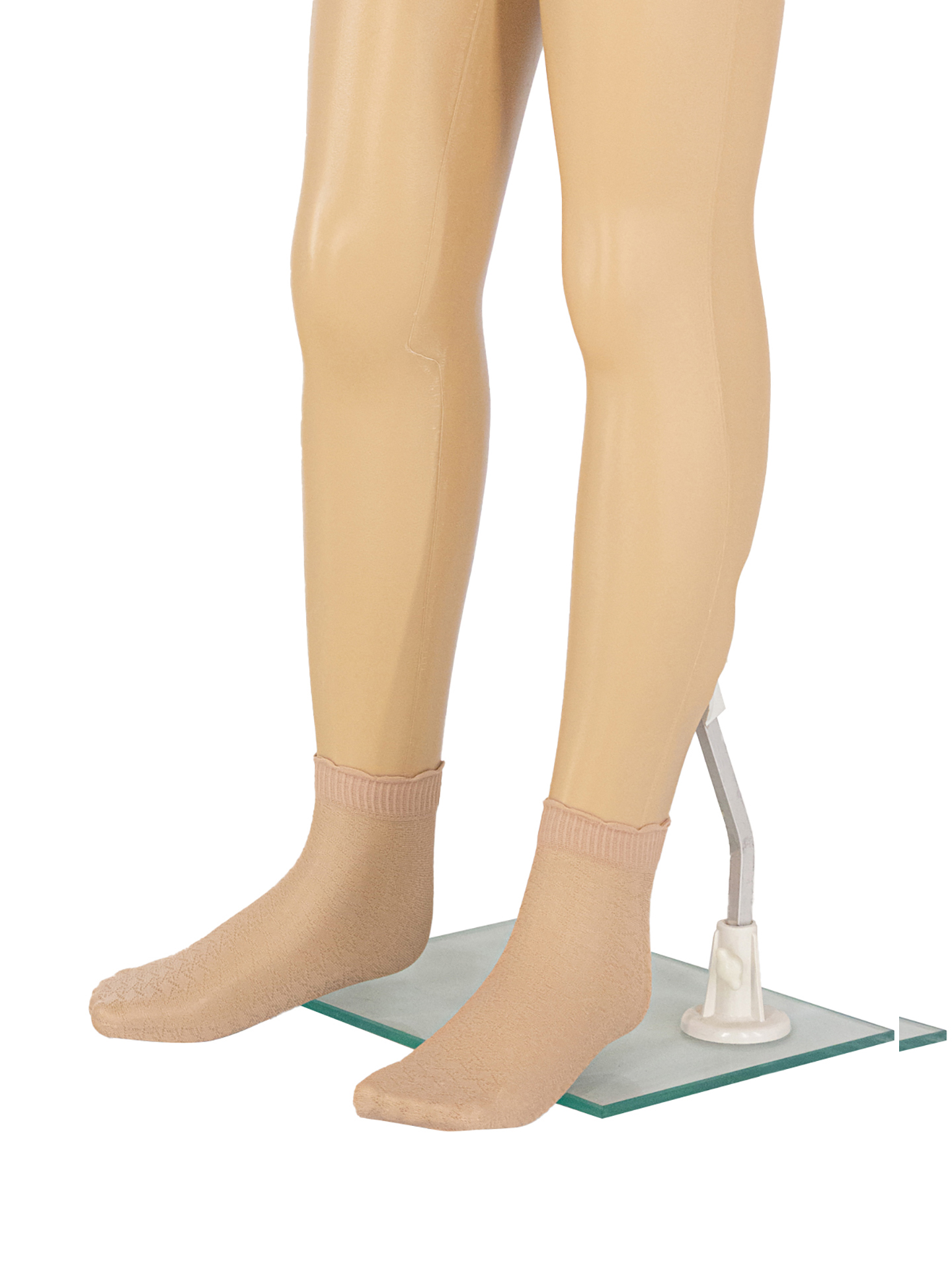 Șosete elegante pentru copii, cu lungime 1/4 și densitate 40 DEN. Modelul geometric și bordura dantelată adaugă rafinament, fiind ideale pentru școală și evenimente speciale.